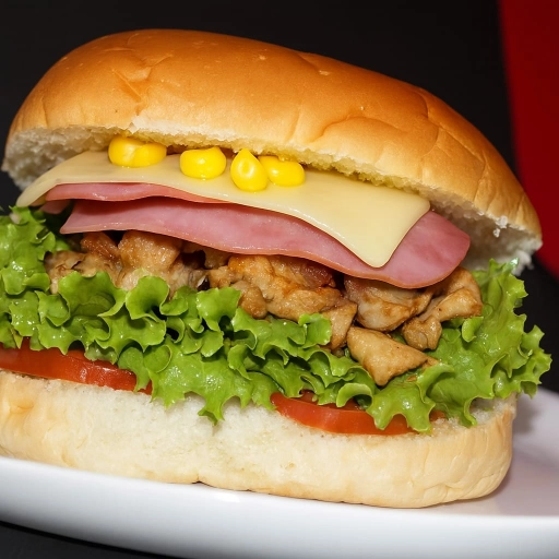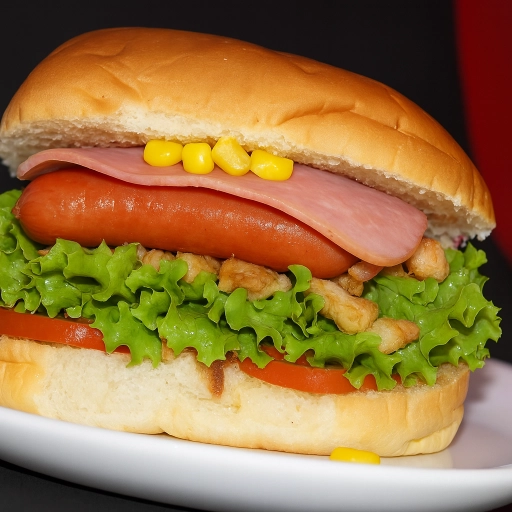 Pão de hamburguer, frango, presunto, muçarela, milho, alface, tomate.